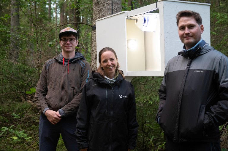 It’s a bright summer evening in early June. In a forest area 60 km southeast of Oslo, the three NIBIO researchers are assembling the automatic light trap for the first time.