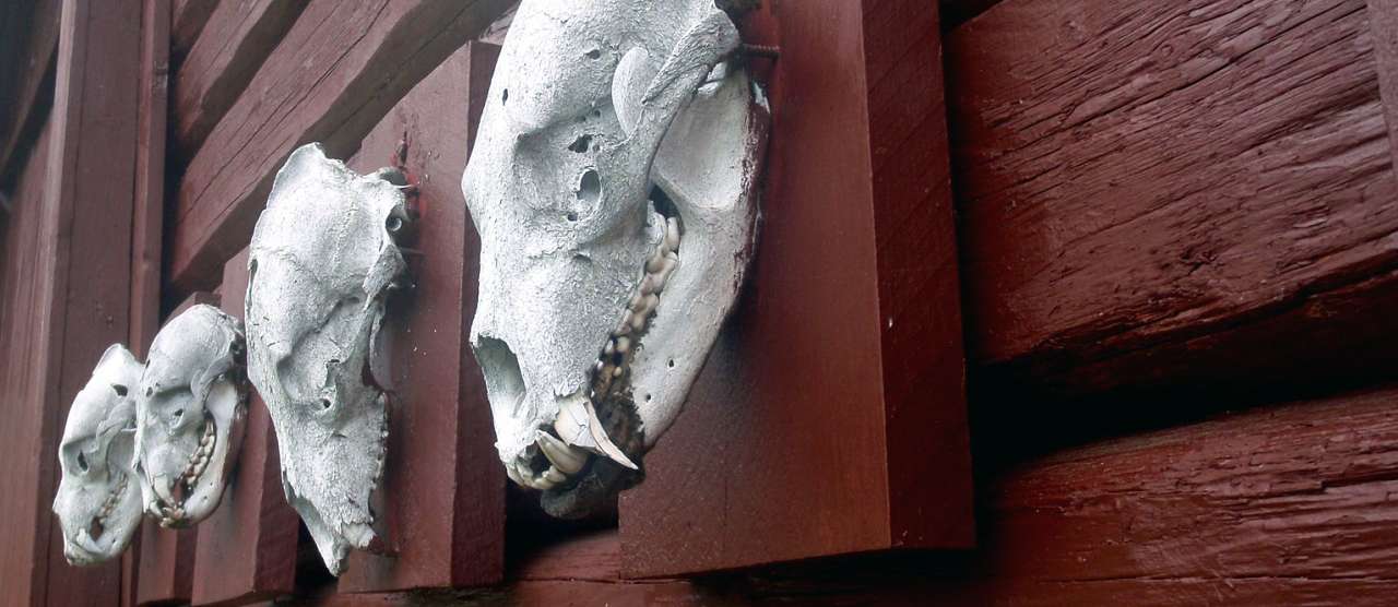 Hodeskaller av bjørn fra Atnosen i Storelvdal kommune, Hedmark. Bjørnene ble skutt av bjørnejegeren Niels Atnosen. Foto: Finn Audun Grøndahl.