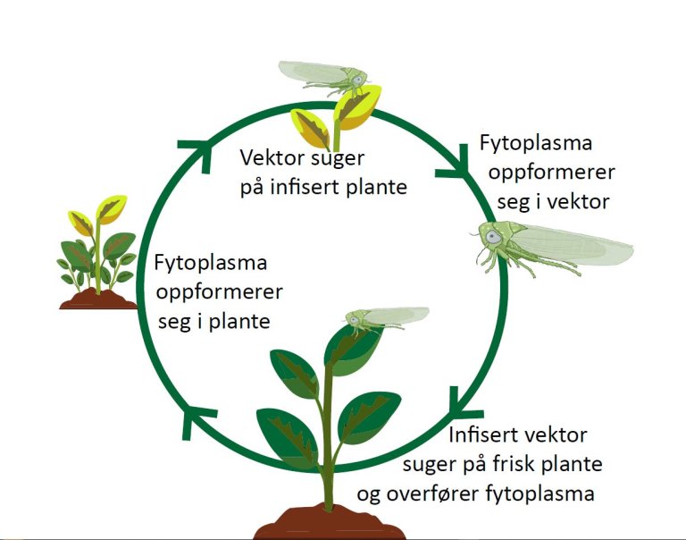 Han forteller også at det i flere studier er vist at vektorene foretrekker vertsplanter som er infisert med fytoplasma fremfor planter som er friske.