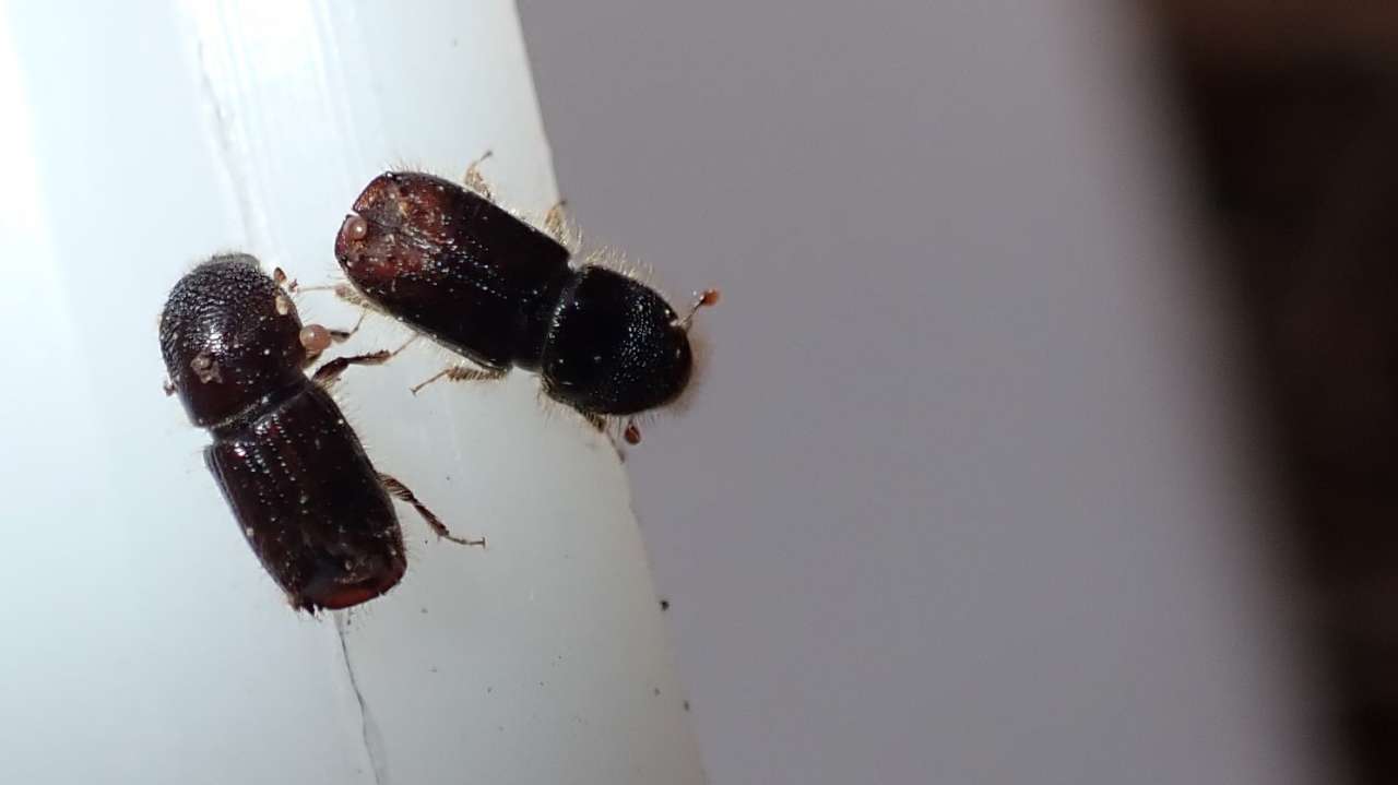 To granbarkbiller har landet på kanten av ei felle. Foto: Bjørn Økland
