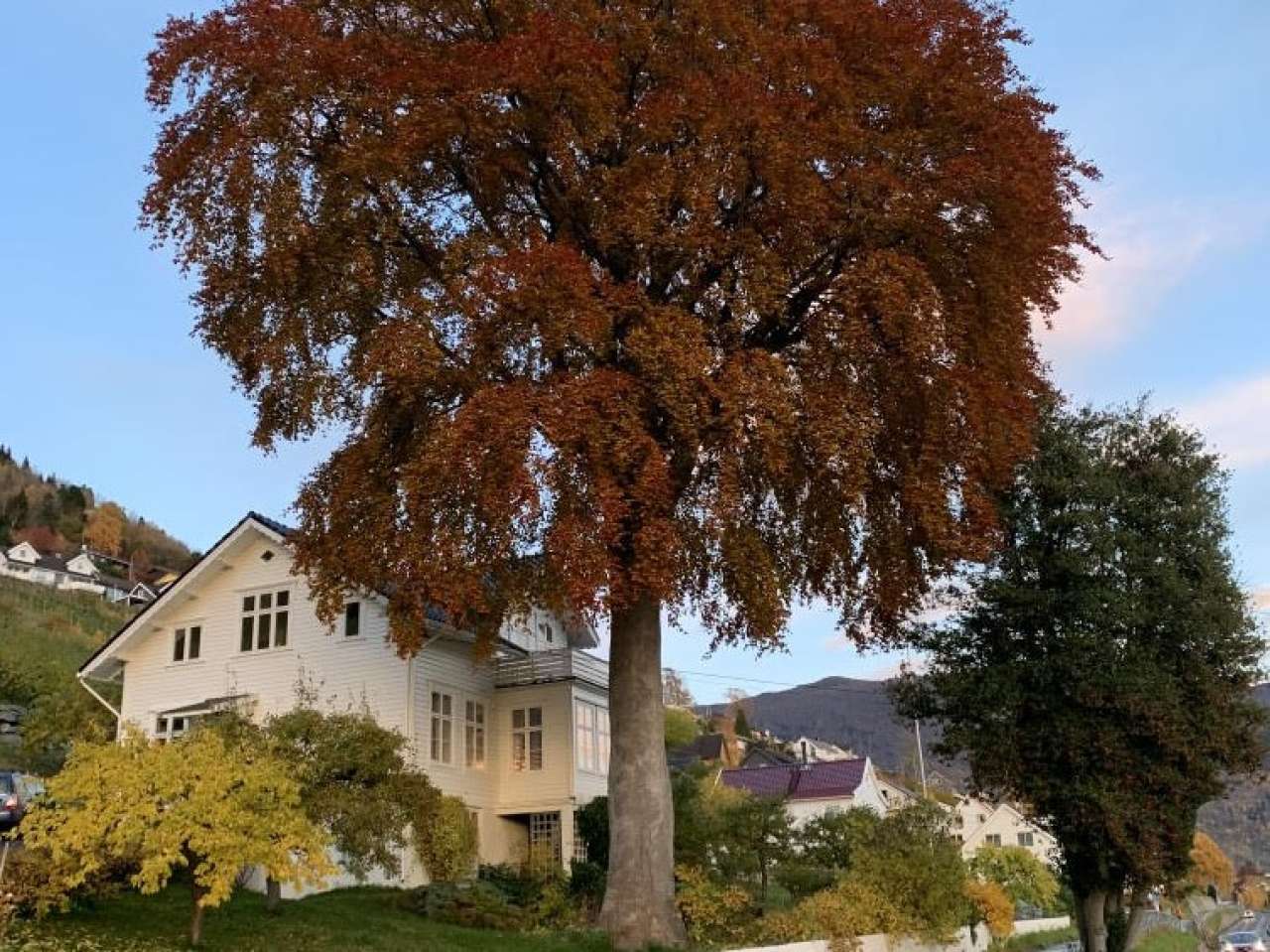 Men det er flere store trær i frodige Leikanger. Rett nedenfor den voldsomme blodbøka, helt i veikanten, står det nemlig en anselig kristtorn. Og da kristtornen ble kontrollmålt i år viste det seg at høyden var 12,4 meter.