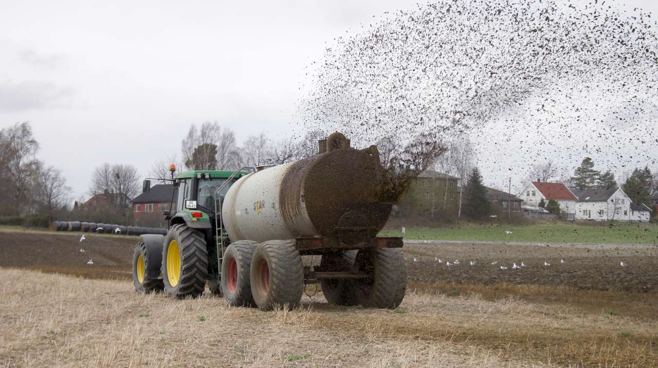 Spredning av husdyrgjødsel: Mengden plantetilgjengelig fosfor som finnes i husdyrgjødselen i Norge har et teoretisk potensiale til å dekke hele det nasjonale fosforgjødselbehovet. Foto: Svein Skøien.