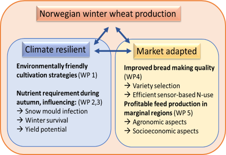 - Identifisere agronomiske og sosioøkonomiske faktorer som påvirker økonomien ved dyrking av høsthvete til mat eller fôr, for å øke beslutningsgrunnlaget knyttet til valg av strategier.