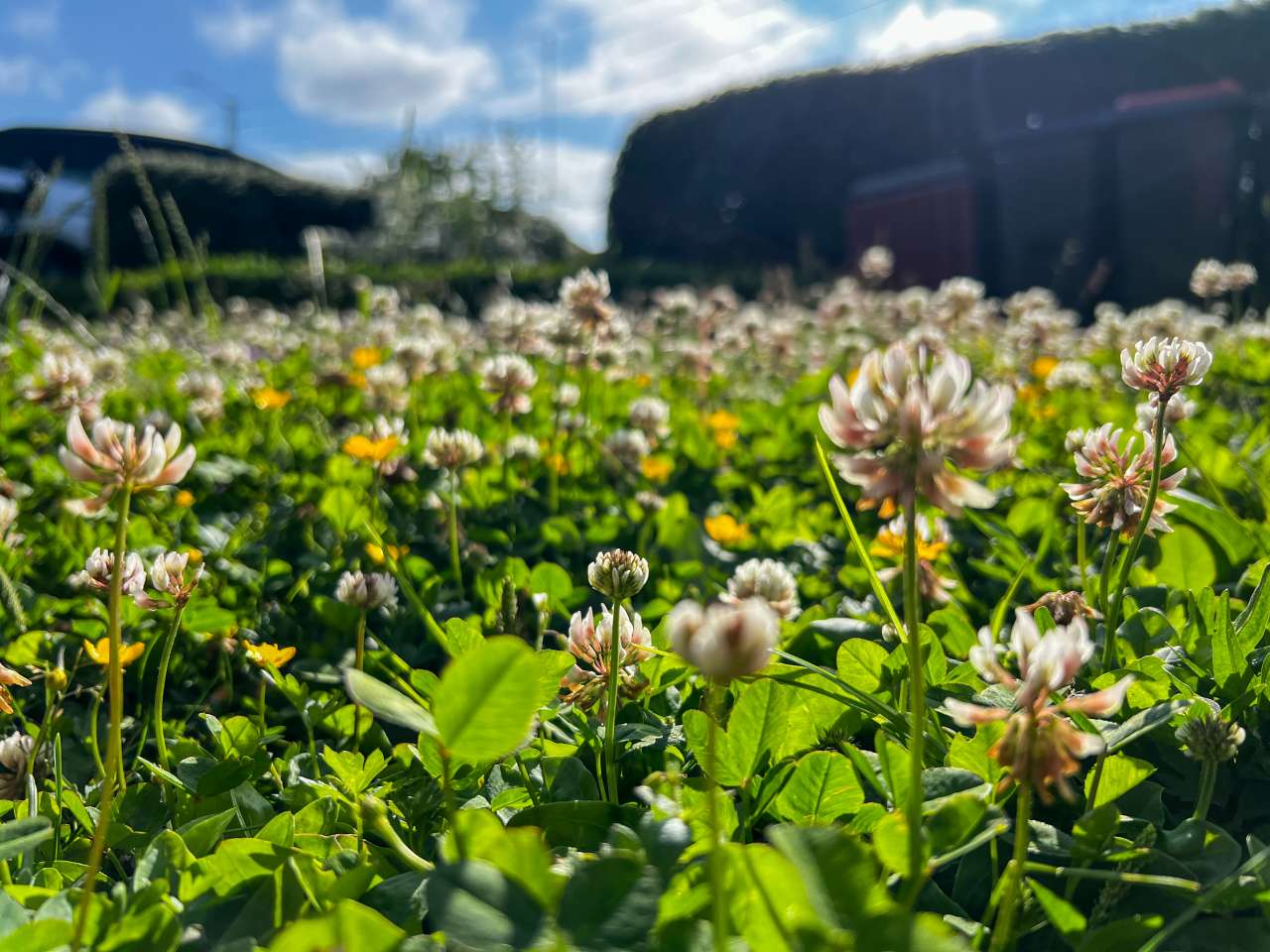 – Utover i sesongen blir det lettare å få tak i mat, men du kan hjelpe humlene ekstra med å la det stå att litt ulike blomstrar langs kantane og i graset.