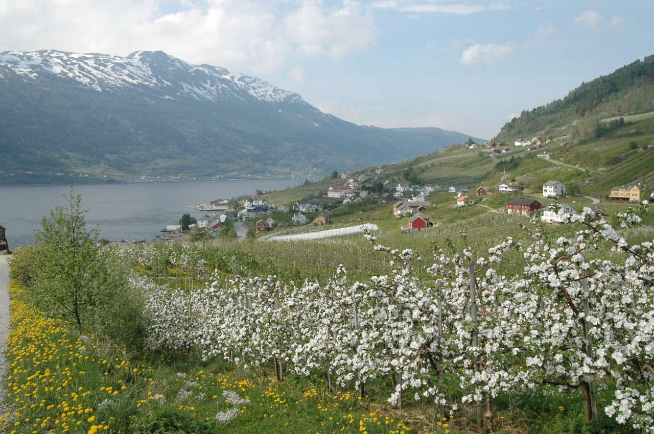 – Så må dei to sortane bløme omtrent samtidig, aller helst bør pollensorten bløme litt føre, slik at pollenet rekk fram til hovudsorten sine blomar før det er for seint.