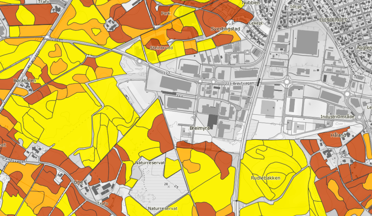 Kartet er ikke ment som et egnethetskart, men viser hvor store begrensninger jordegenskapene setter for valg av vekster og agronomisk praksis i den rammen som de lokale forholdene setter.