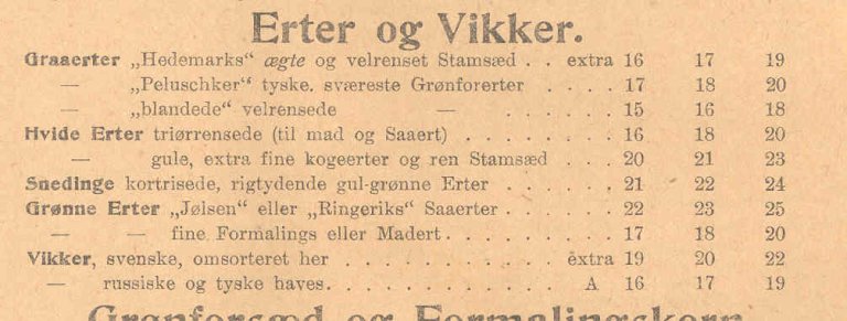 - Kokeert: Anvendes som mat, inneholder sorter med gule eller grønne frø som tørkes og anvendes etter koking, typisk erter til ertesuppe.