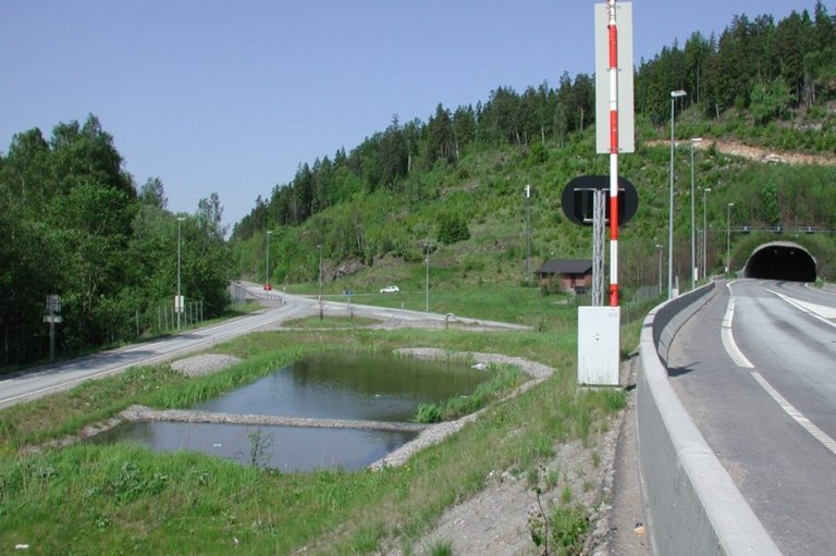 Rensedam for avrenning fra motorveg og tunnelvasking, E18 i Ås. Foto: Roger Roseth